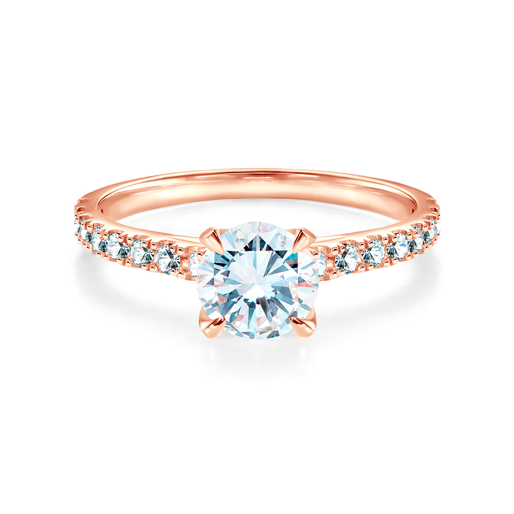masę 0,31 ct, nieskazitelną czystość i kolor SI/H z doskonałym szlifem brylantowym. Wykonany z