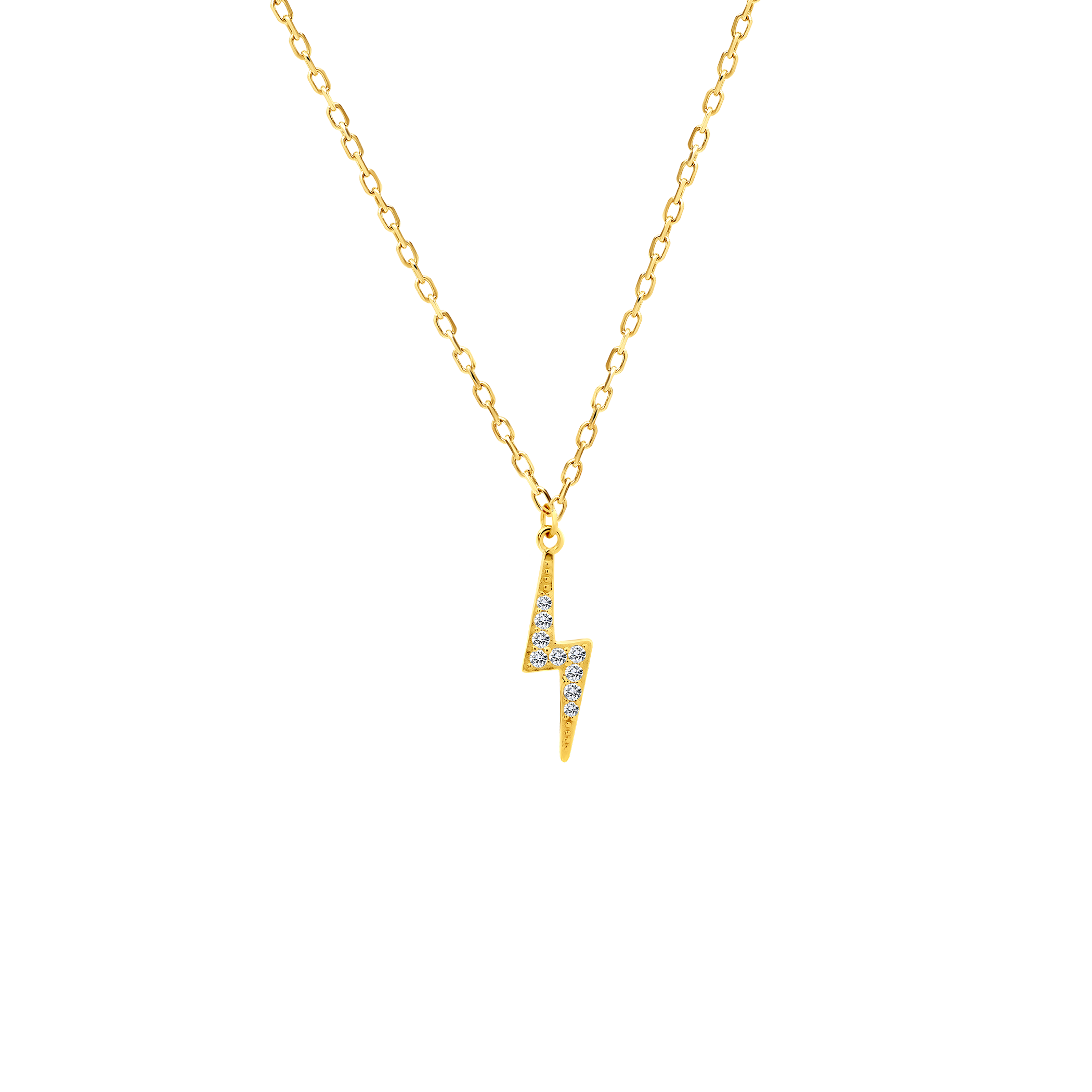 Naszyjnik piorun Savicki wykonany ze srebra (próba 925), pozłacany żółtym złotem. W naszyjniku zostały osadzone cyrkonie o szlifie brylantowym.